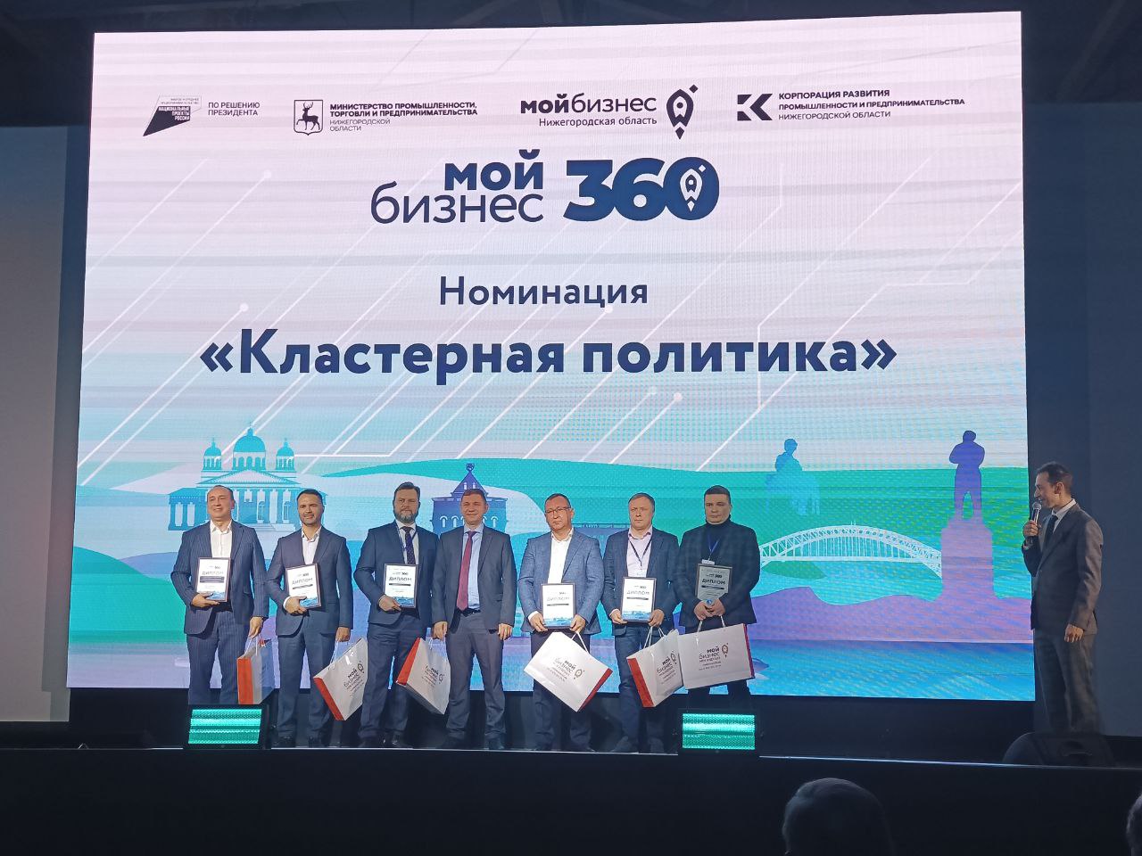 А также в целях выявления успешных примеров деятельности субъектов МСП – получателей поддержки, реализуемой в рамках национальных проектов, популяризации доступных предпринимателям видов поддержки и услуг, доступных в рамках национальных проектов на территории Нижегородской области была проведена оценка по нескольким номинациям, в одной из которых Регионально-промышленная компания была удостоена наградой.